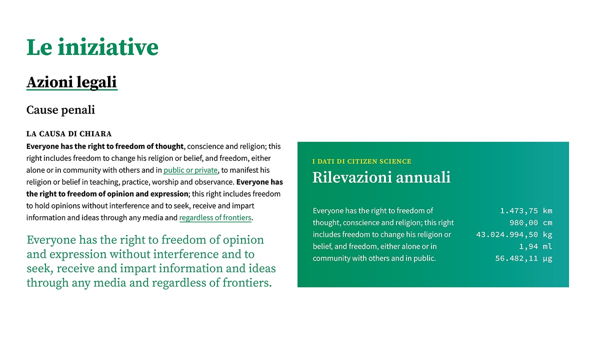 In parallelo, abbiamo progettato e sviluppato il nuovo sito web, più accessibile e aggiornato, che potesse raccogliere le diverse attività del comitato: dalle azioni legali, agli articoli di approfondimento, alle campagne partecipative. Abbiamo inoltre creato materiali per la campagna di monitoraggio civico della qualità dell’aria, un’iniziativa aperta e condivisa che ha visto la partecipazione attiva di decine di associazioni e cittadini.